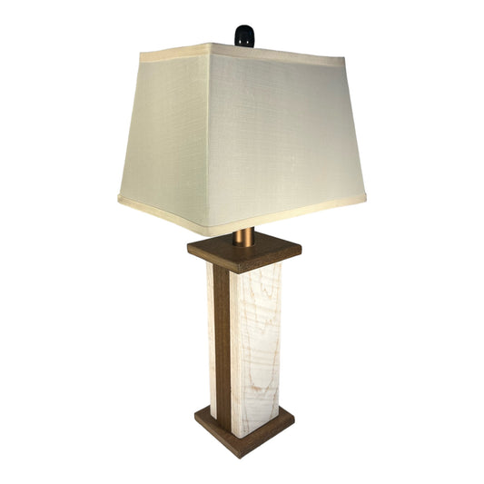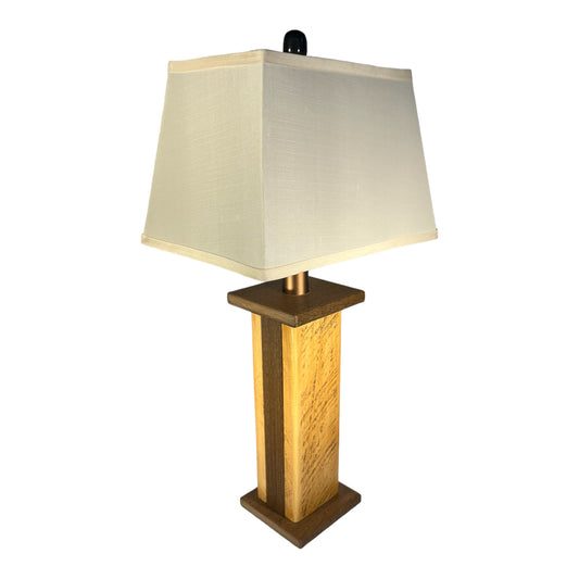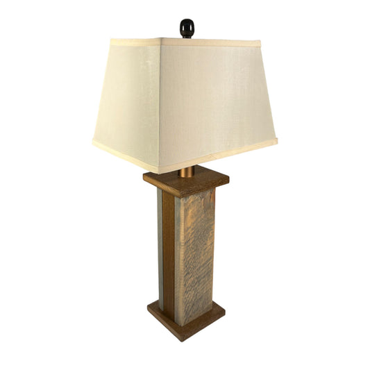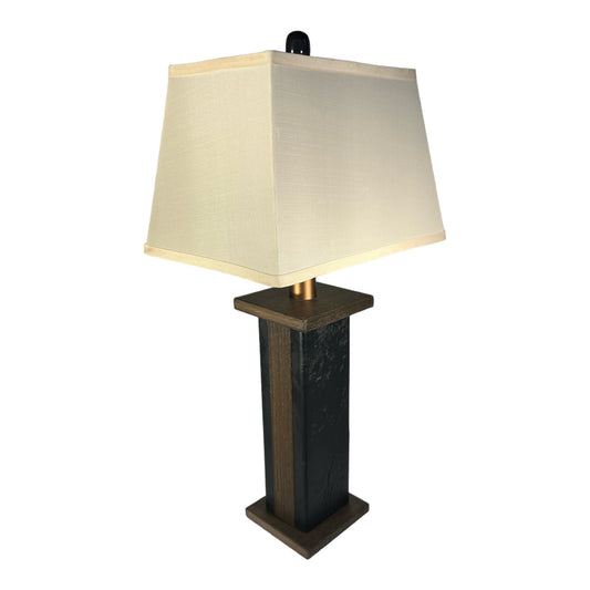 Rustic Farmhouse Rough Sawn Barn Wood Battery Powered Table Lamp - Textured Brazilian Walnut Core with Black Barn Wood Panels