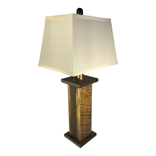 Rustic Farmhouse Rough Sawn Barn Wood Battery Powered Table Lamp - Textured Hickory Poly Core with Golden Oak Barn Wood Panels