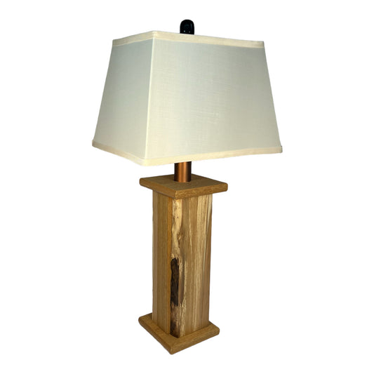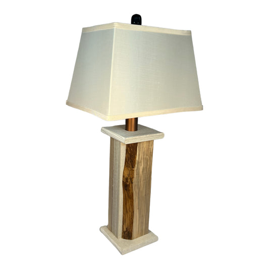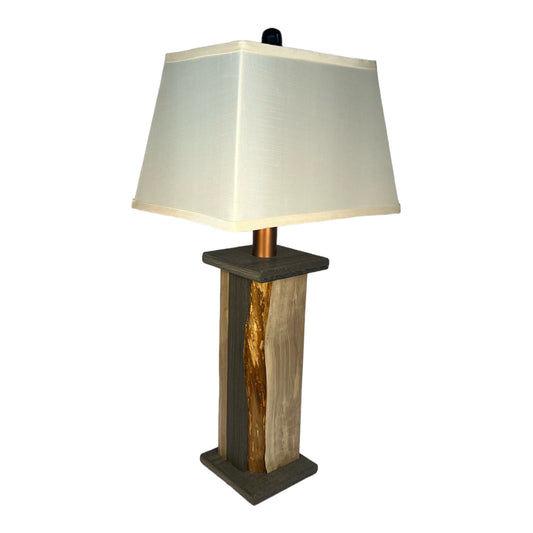 Modern Rustic Farmhouse Live Edge Wood Table Lamp - Textured Weathered Grey Poly Core with Maple Live Edge Wood Panels