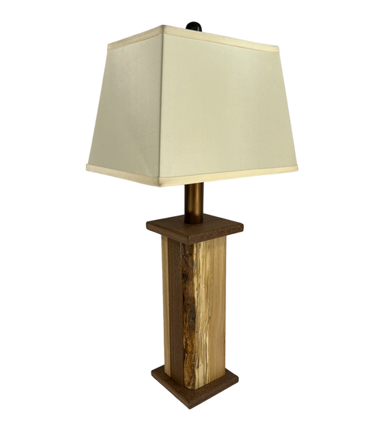 Rustic Farmhouse Battery Powered Live Edge Wood Table Lamp - Walnut Poly Lumber Core with Maple Live Edge Panels